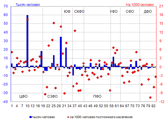 за счет миграционного прироста, то в регионах-субъектах Российской