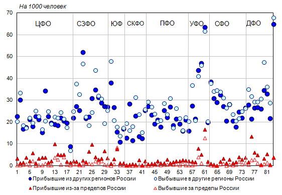 России была в Чукотском (64,8 прибывших на 1000 тысяч человек