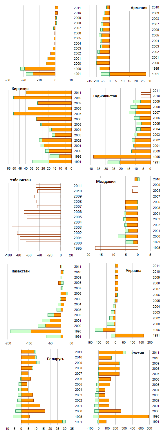 отрицательным в большинстве стран СНГ (рис. 5.1-5.10). За весь период