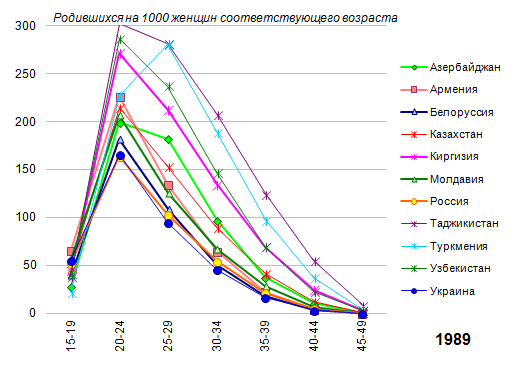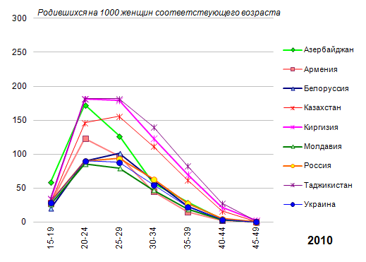 и старше в Азербайджане). Повышение рождаемости в группе 15-19 лет
