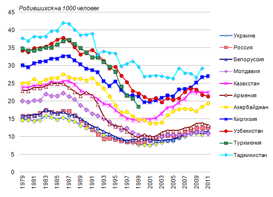 СНГ, варьируясь от 8‰ на Украине до 27‰ в Таджикистане. В последующие