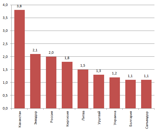 В 2009 году с Россией с по этому показателю сравнялась Литва.
