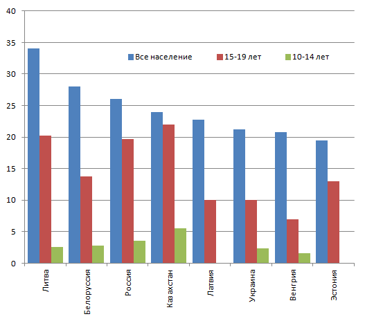 высокой в Европе смертностью от самоубийств среди подростков (рис.