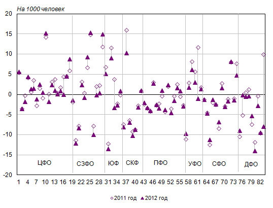 Миграционный прирост населения в 2012 году отмечался