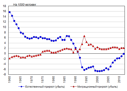 Естественная убыль населения в 2012 году сократилась