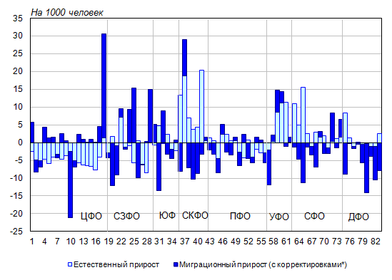 году варьировалось от -8,5‰ в Псковской области до +20,5‰ в Чеченской