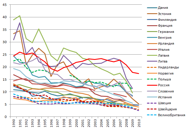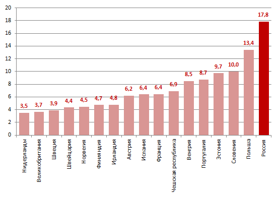 раза, а есть еще Нидерланды, где она ниже, чем в России, в пять