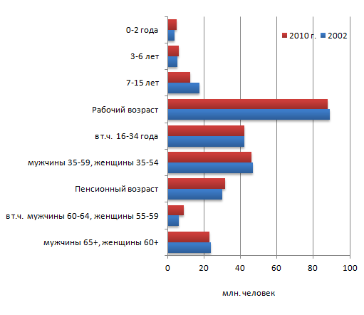и старше выросла на 26,6%. Перепись 2010 года, по сравнению с 2002