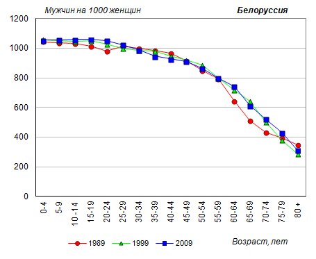 в Белоруссии, по данным переписей населения, число мужчин на 1000