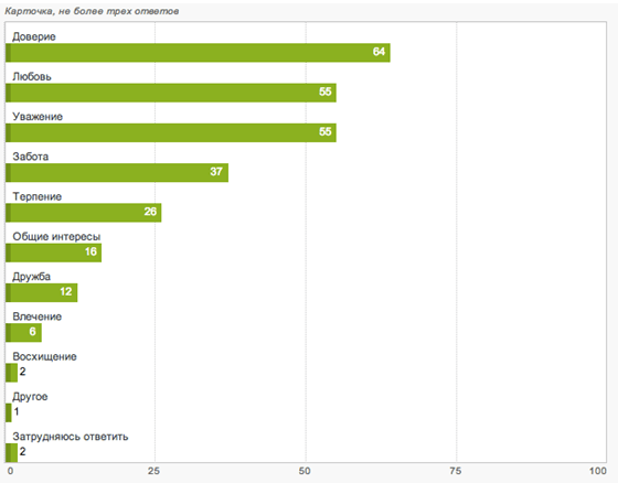 быть старше, – отвечали 79% респодентов. Карточка, один ответ