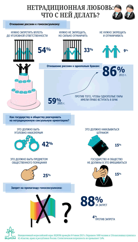 представляет данные о том, как россияне относятся к гомосексуализму,