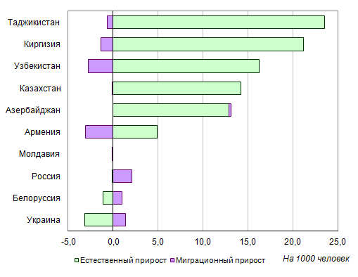 убыли) происходит в странах СНГ в результате роста числа родившихся