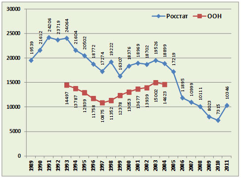 С 1993 по 2004 гг. имеются данные ООН (они также приведены