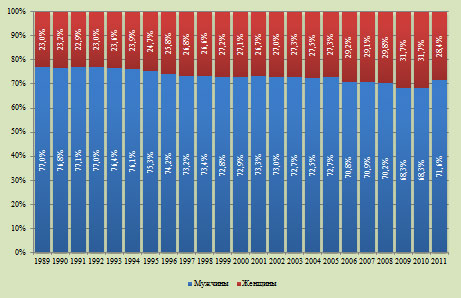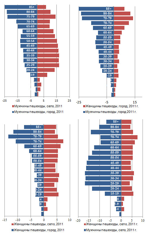по полу. С 1989 по 2011 год в структуре пешеходной смертности всегда