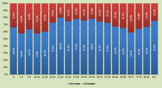 сконцентрировано именно в трудоспособных возрастах (рис. 15).