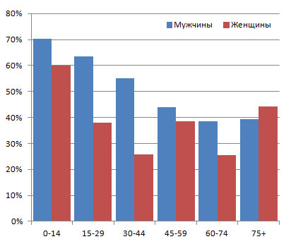преобладали мужчины, на которых приходилось более 70% всех смертных