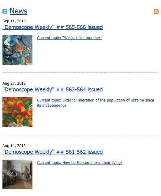 по регионам России и т.п. Демоскоп Weekly регулярно знакомит читателей