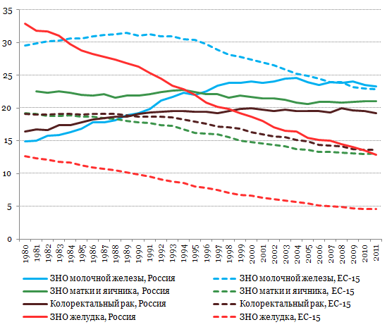 бронхов и легких в России и ЕС-15 выровнялись, но уровень смертности