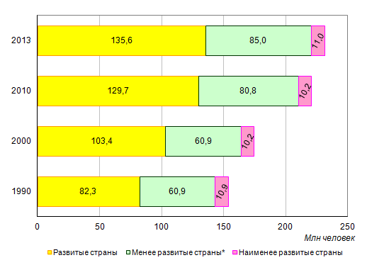 человек (на 23 миллиона человек за 1990-2013 годы), в Азии – менее