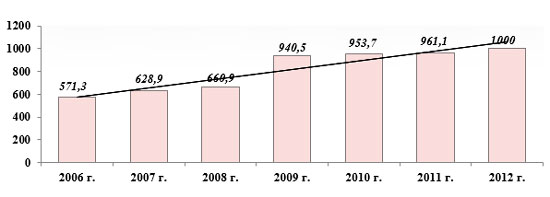 в 2012 г. он составил 12223,8 тыс. человек, а уровень занятости2