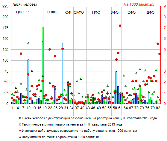 Разрешение на работу в России на конец 2013 года имели
