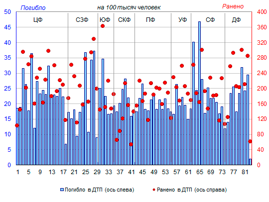 ДТП с пострадавшими. В половине регионов-субъектов федерации это