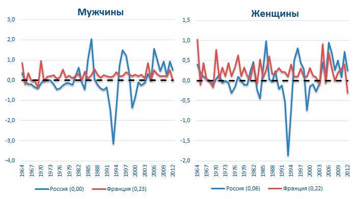 Рисунок 1. Годовые приросты ожидаемой продолжительности
