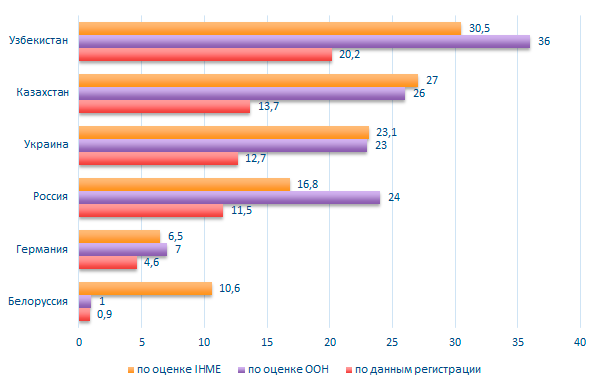 Примечание: выбраны страны СНГ, имеющие хороший учет смертности