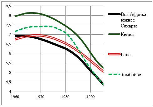 рождаемости в странах Африки южнее Сахары, 1960-1995 гг.
