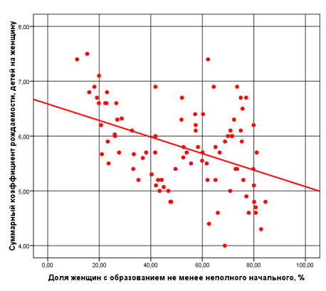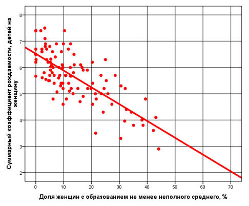 - между уровнем рождаемости и уровнем образованности женщин. Чем