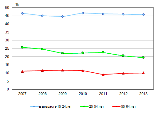 в возрасте 25-54 она вдвое ниже и снижается – с 25,7% в 2007 году