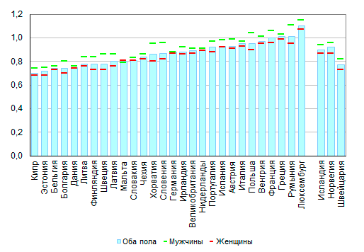 стран ЕС-28 варьировалось от 0,70 на Кипре до 1,10 в Люксембурге