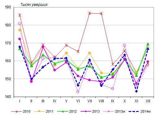 январе (168 тысяч). Заметное повышение числа умерших по сравнению
