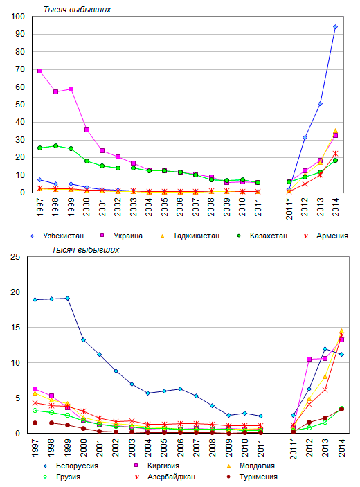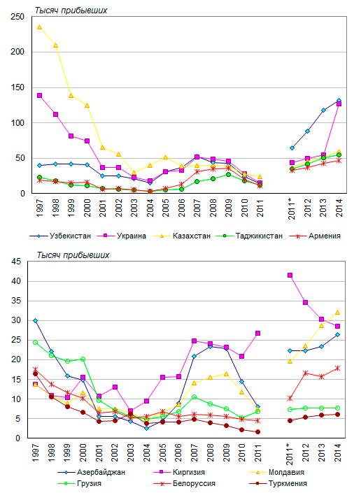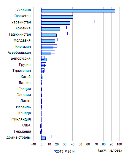 в Россию отмечалось в 2014 году по всем странам СНГ, за исключением