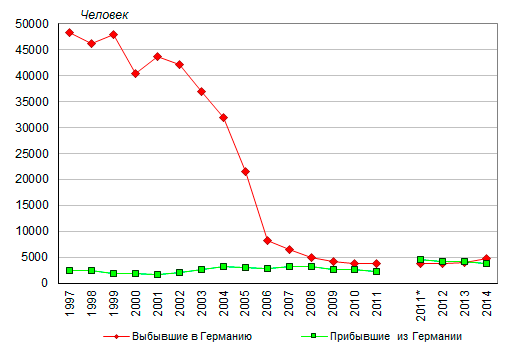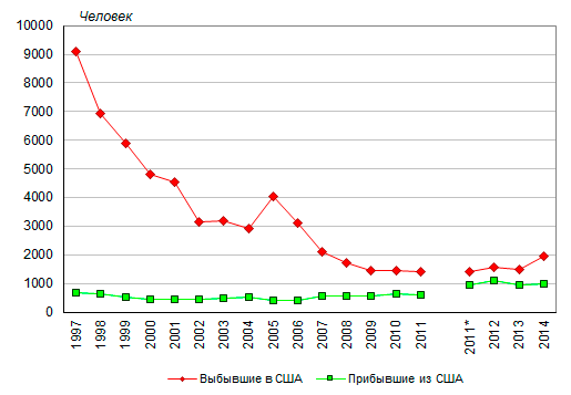 при сокращении выезжающих туда из России. В 2011 году число иммигрантов