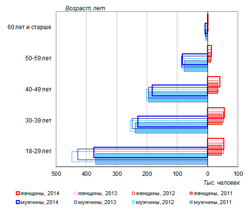 тысячи человек (в 1,6 раза больше, чем в 2013 году)[18].