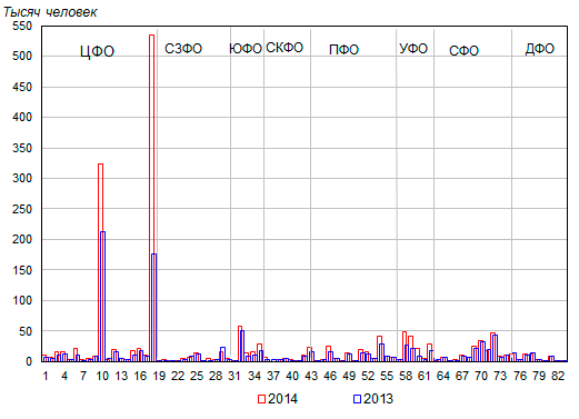 три квартала 2014 года, наибольшим было в Москве - 534,3 тысячи.