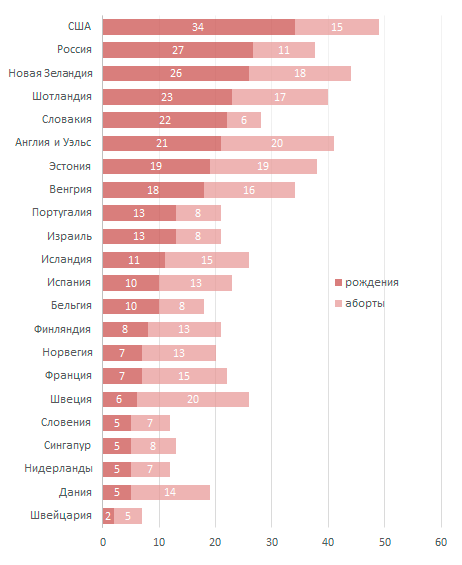 (20 на 1000) и Швеция (20). В США этот показатель равен 15 на 1000,