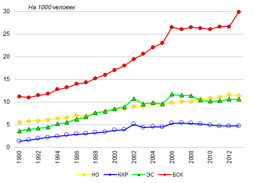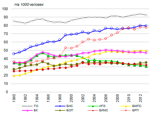 органов возросла за 1990-2013 годы в 3,6 раза, эндокринной системы,