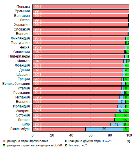 19 странах ЕС-28, преобладают граждане стран, не входящих в Европейский