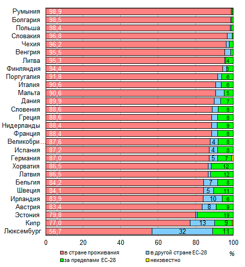 другой страны-члена ЕС-28). Почти 473 миллиона человек (93,3%) являлись