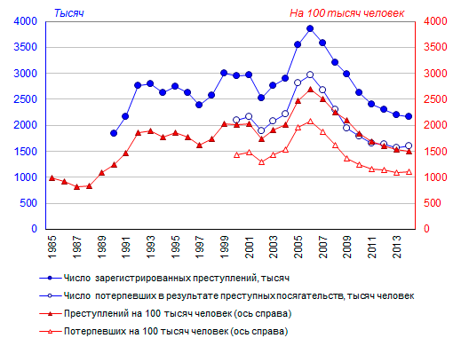 годах. В 2014 году в результате преступлений погибли 32,6 тысячи