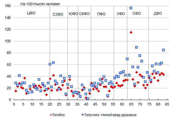 в Дальневосточном, а число получивших тяжкий вред здоровью – от