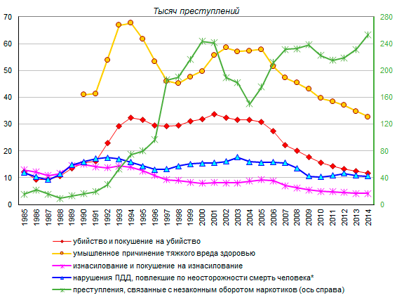 в 1988-1992 и 1997-2003 годах. Наибольшее число преступлений данного