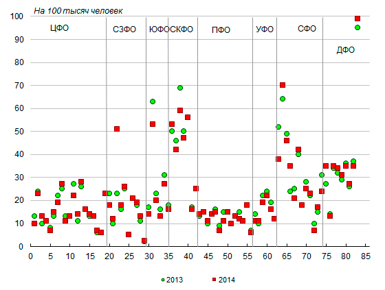 по России, равном 176 на 100 тысяч человек. По сравнению с 2013