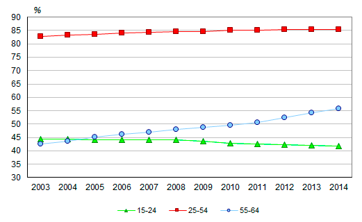 В 2003-2014 годы экономическая активность молодых снижалась,