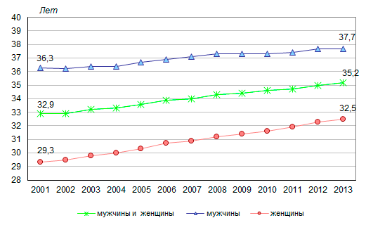 рабочей жизни увеличилась за 2001-2013 годы на 2,3 года, у мужчин