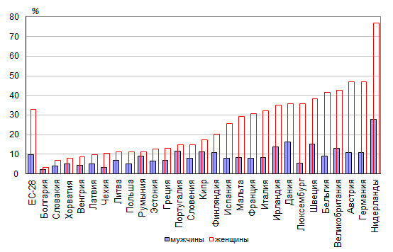 В ЕС-28 высокой долей занятых неполное время в течение