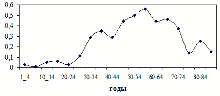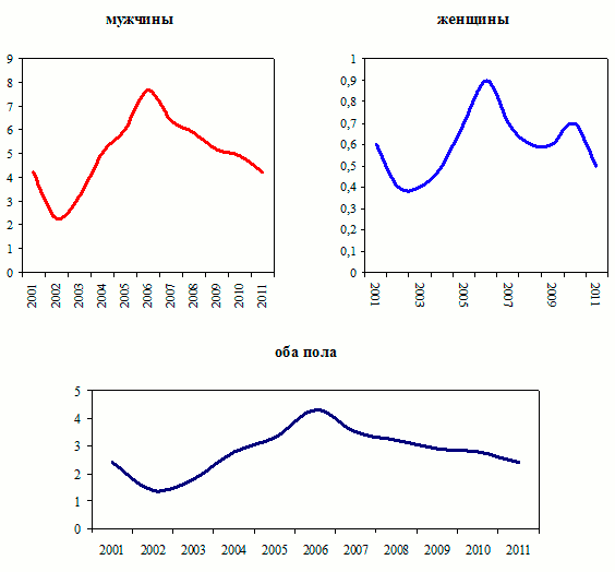 базе данных о смертности Росстата РФ. При этом были рассчитаны стандартизованные