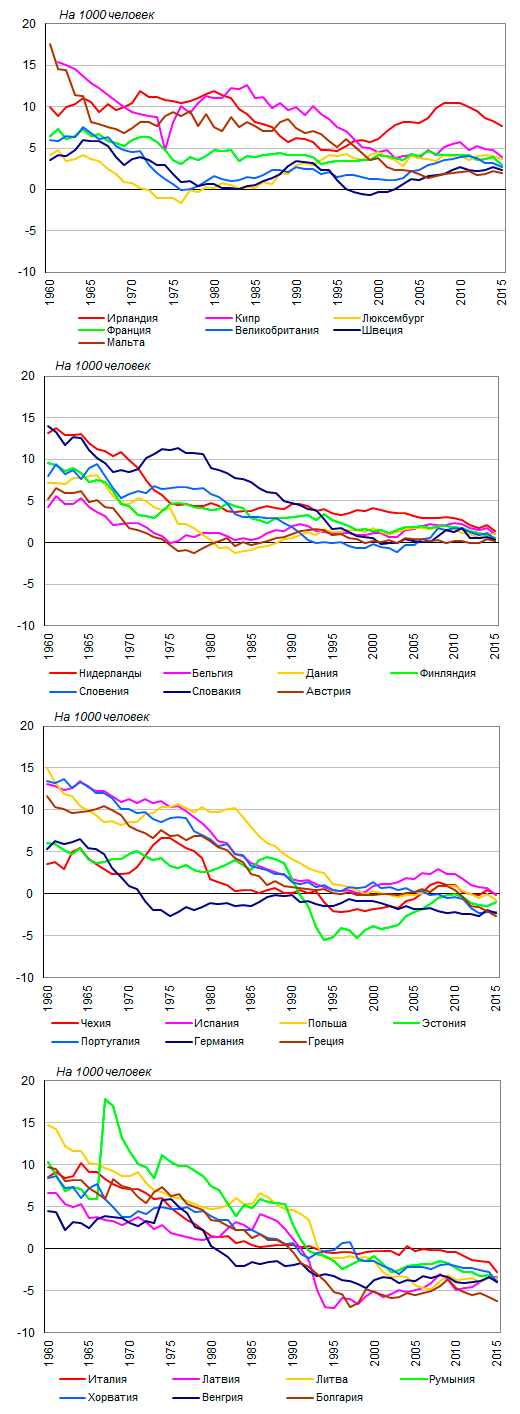 населения ЕС-28 (-0,3‰), рост населения обеспечил миграционный прирост